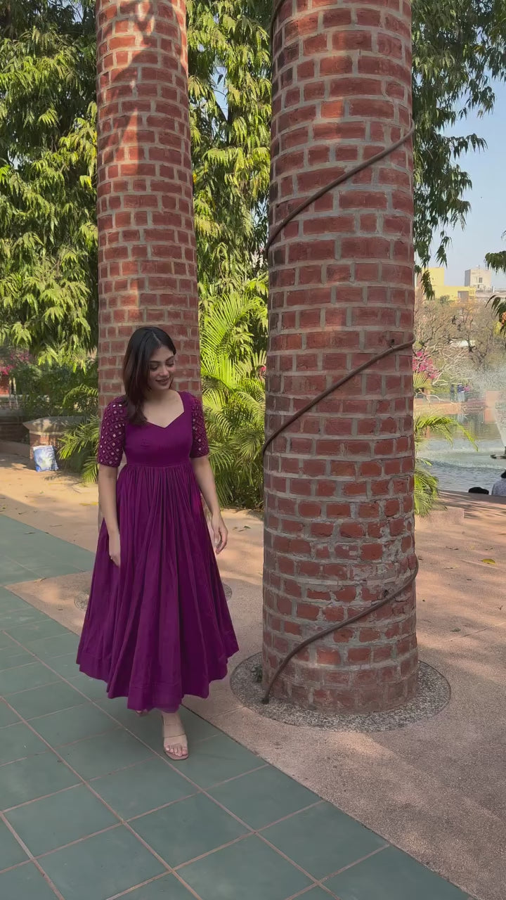 Deep Magenta Mirror Work Anarkali Kurta Set