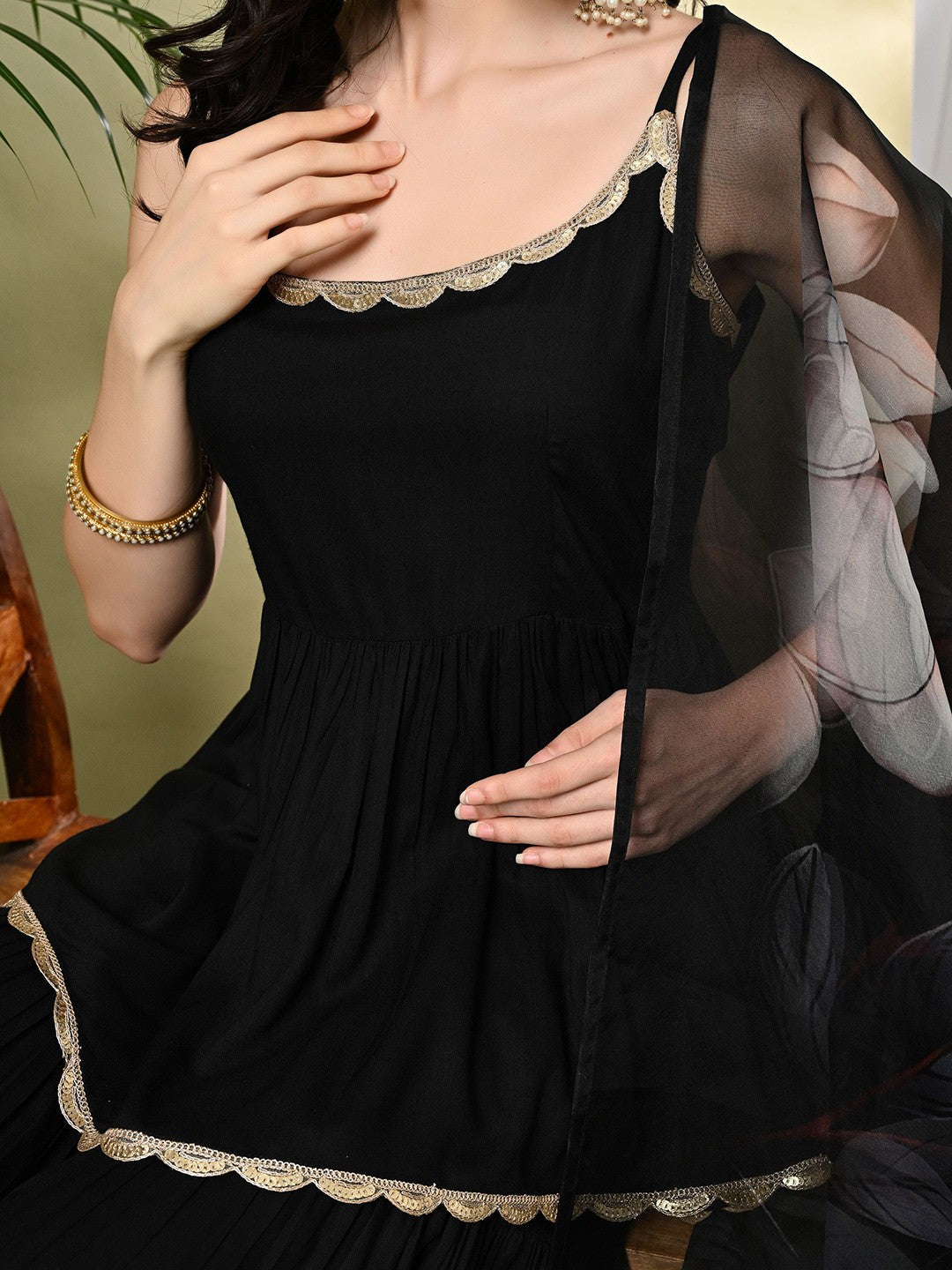 "Gulnaar Tiered Sharara Set – Elegance with Golden Gota"