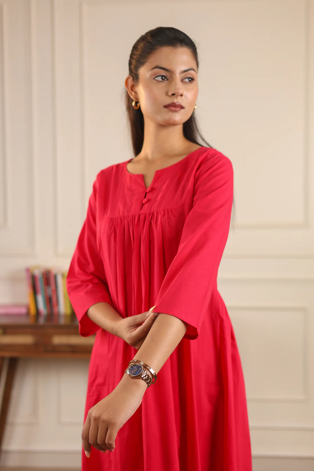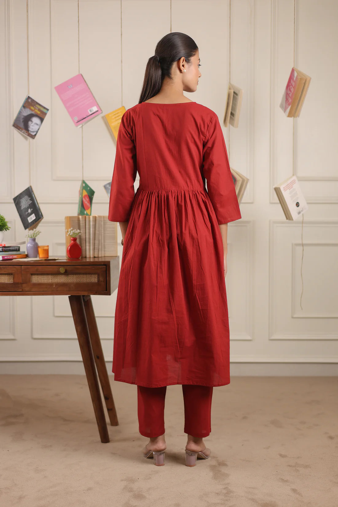 "Nayra" - Flowy Gathered Yoke Cotton Kurta & Straight Pants Set