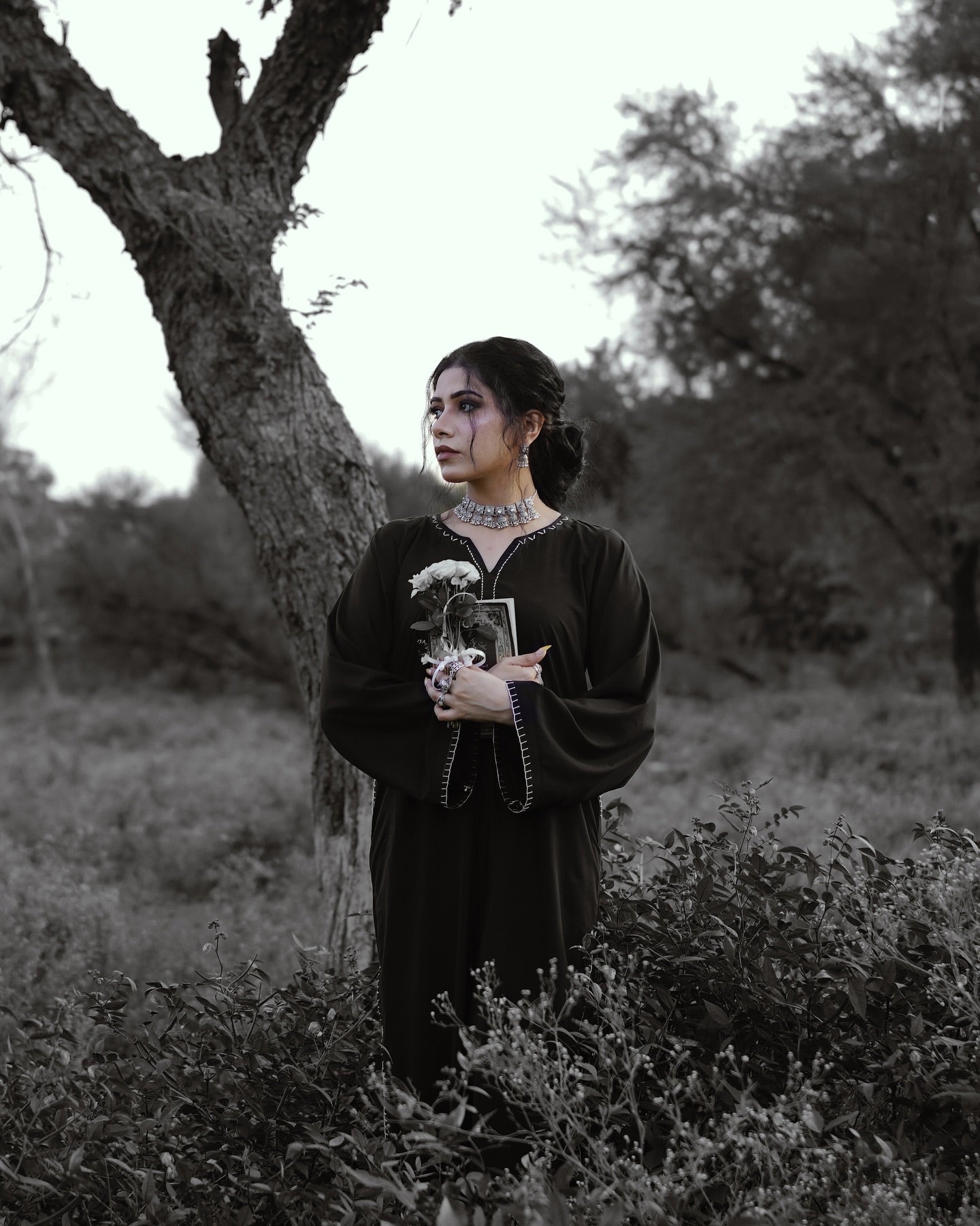 - Set Includes: One (1) Kurta and One (1) Pair of Trousers (Implied matching black, styled with white)