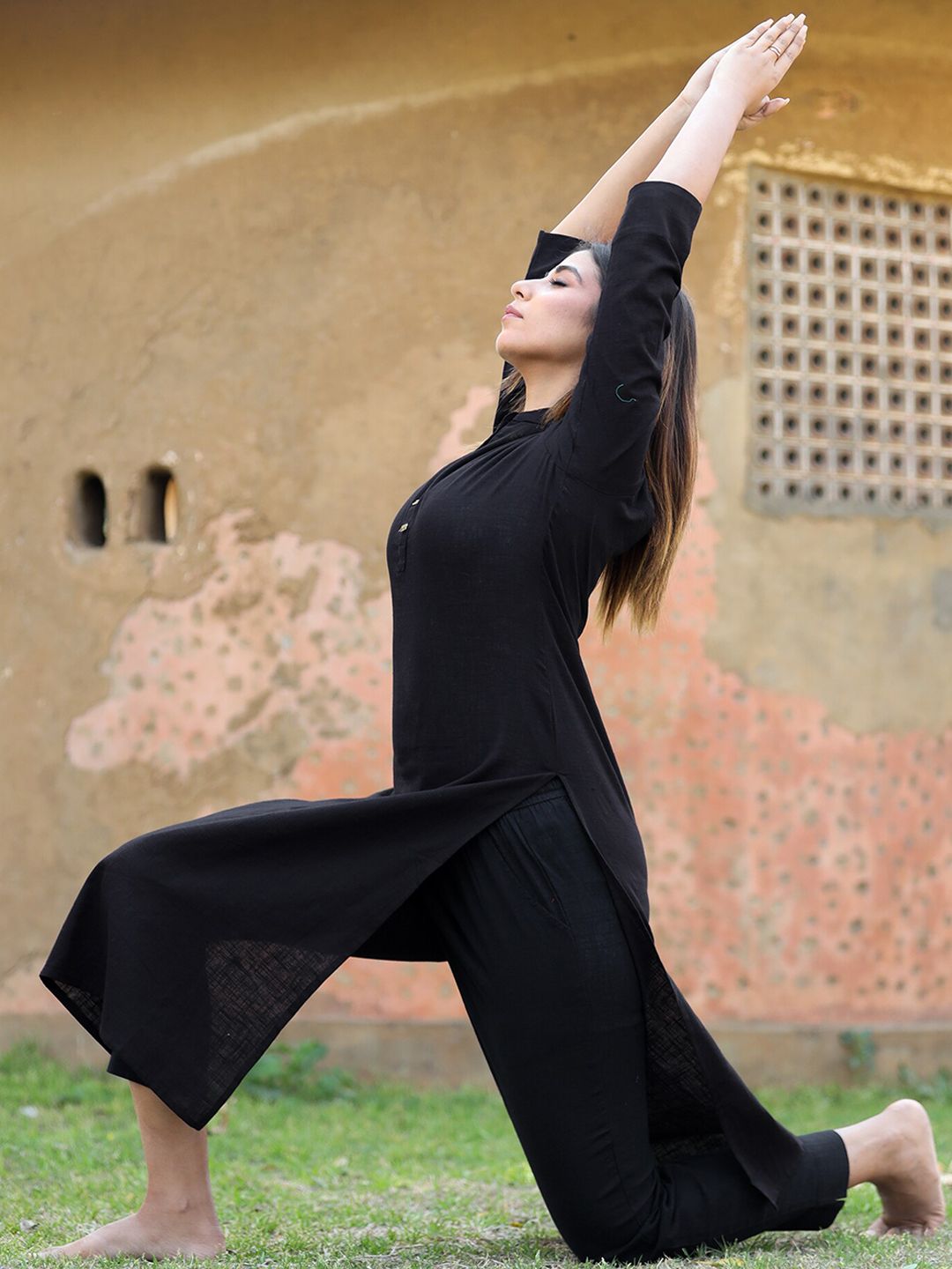 Sleek Solitude: Black Mandarin Collar Kurti with High Slit
