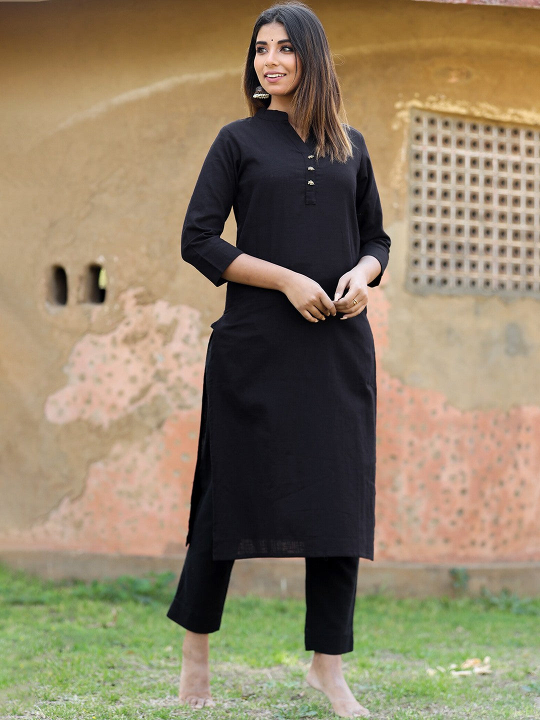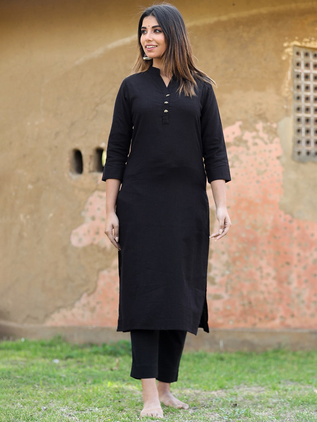 Shop Now: Embrace style and comfort with this exquisite black mandarin collar kurti. Visit our website to make this versatile piece yours today!