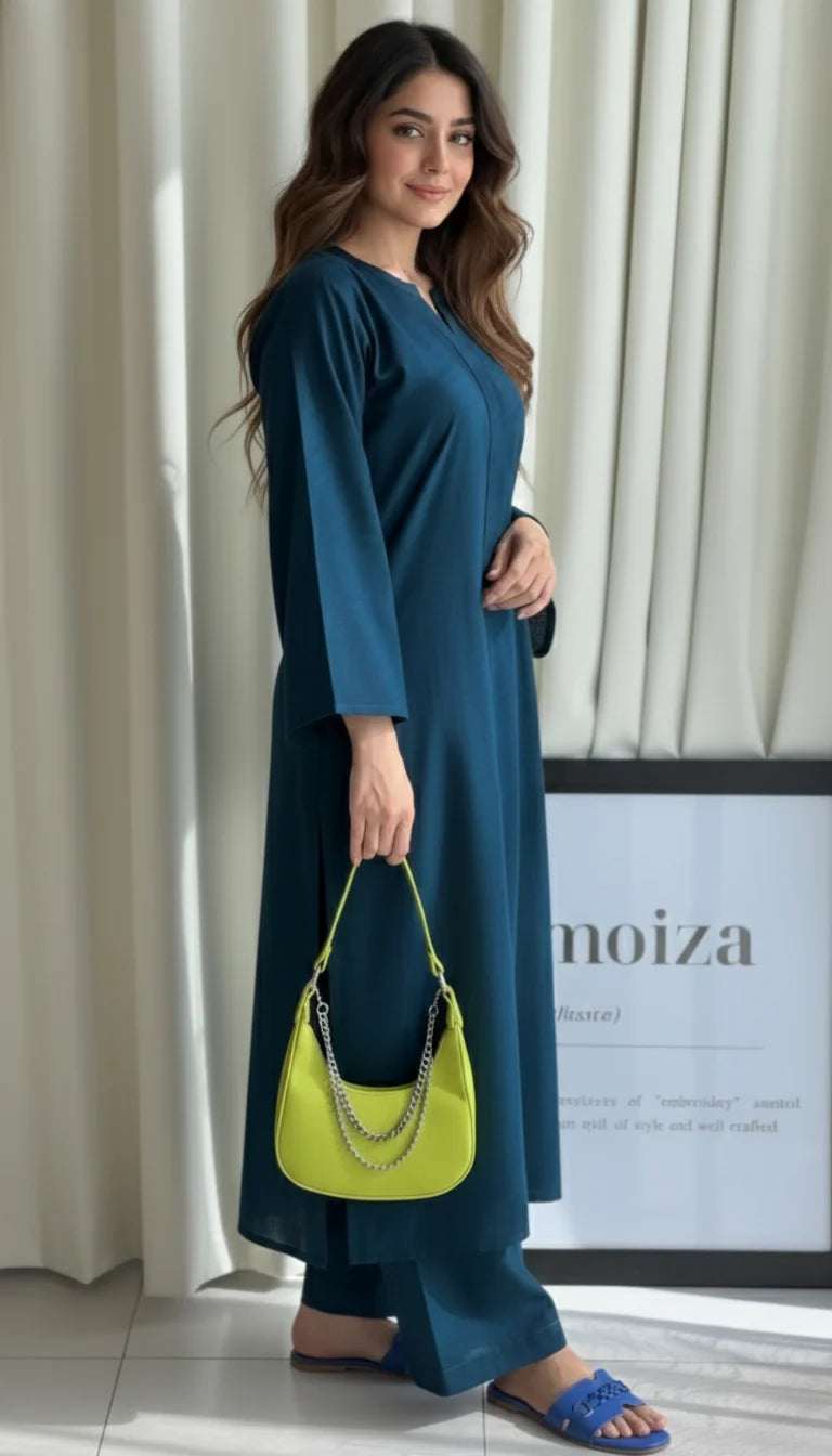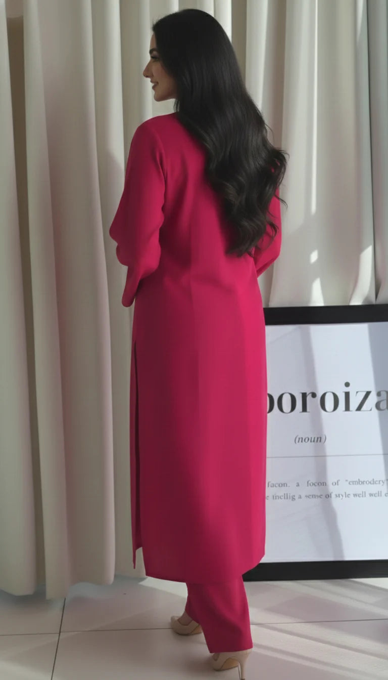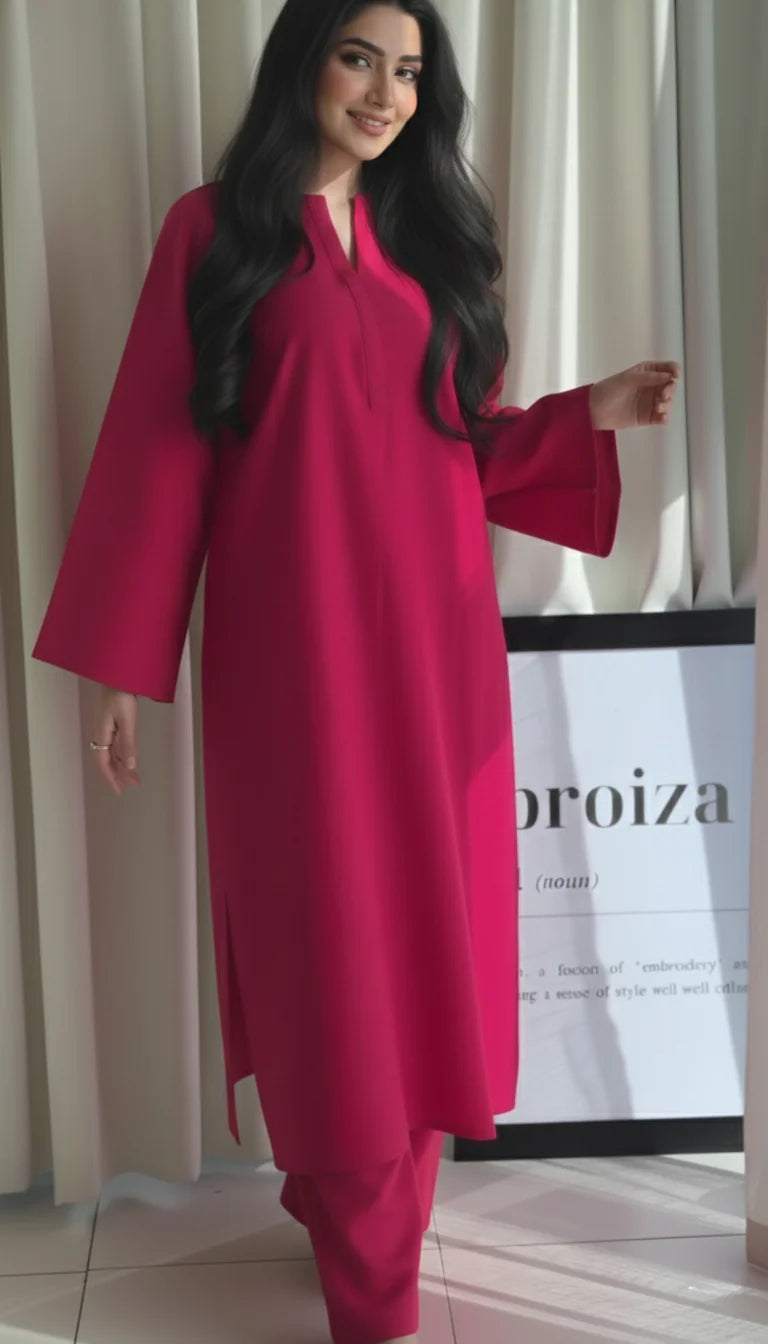 The "Tarini" set is a celebration of minimalism and color, available in a curated palette of vibrant and classic solid shades to match every mood and occasion. The straight-cut kurta features elegant bell sleeves and a minimalist V-neckline, offering a sophisticated and contemporary silhouette. Paired with comfortable straight pants, this solid color cotton set is an ideal addition to your wardrobe, effortlessly transitioning from daily wear to professional settings. Simply select your favorite shade and experience the perfect blend of style, comfort, and the premium quality that Vedora promises.