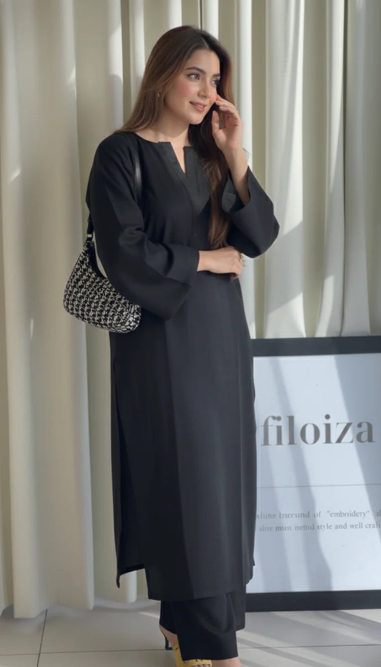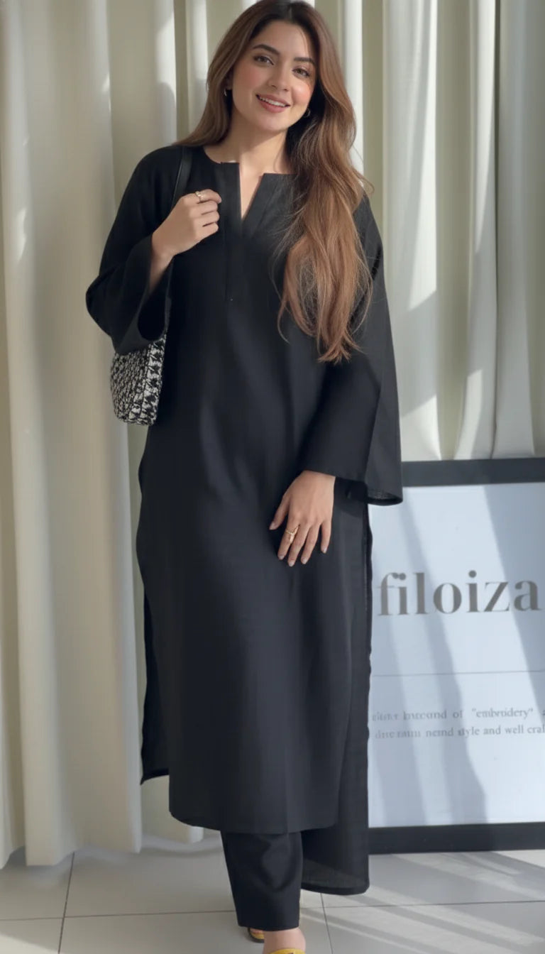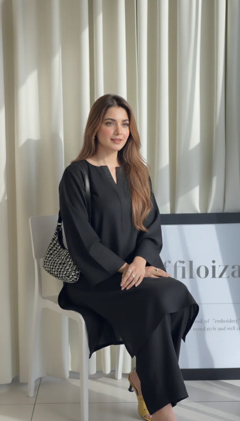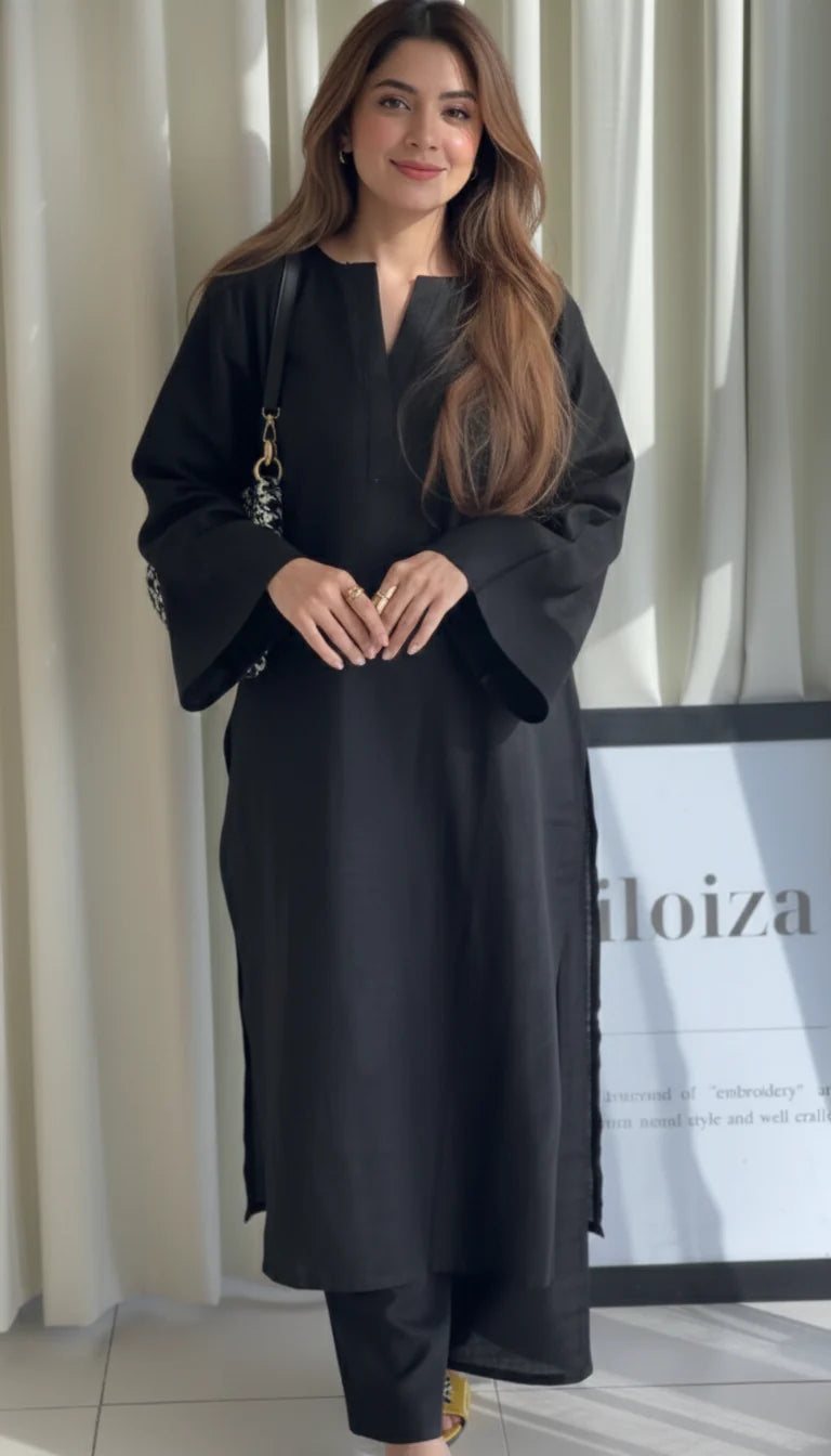 - Design: Straight-cut Kurta with a minimalist V-Neck and modern Bell Sleeves