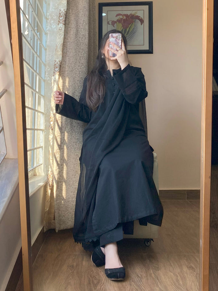 A Chiffon Dupatta with lace accents that floats effortlessly, adding lightness and flow to your ensemble.