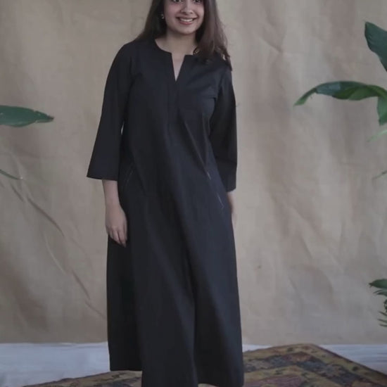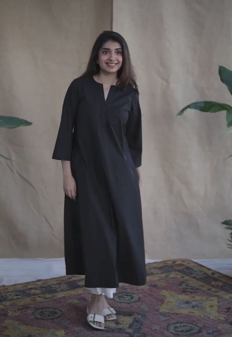 Vedora’s Black Rayon Poplin Kurta – Timeless Elegance in Every Stitch