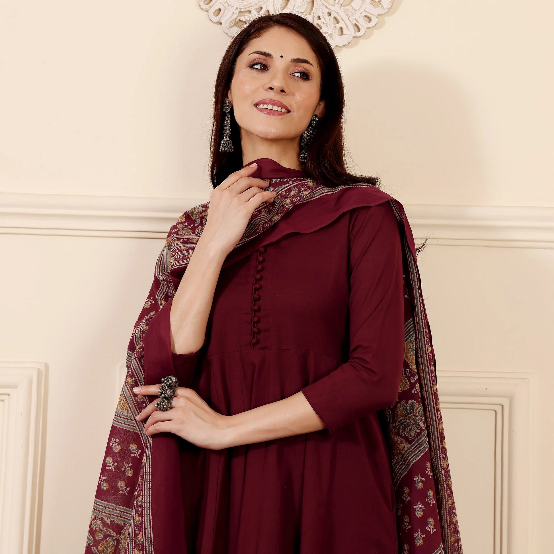 "Vibhaari" - Maroon Anarkali Suit Set with Patterned Dupatta